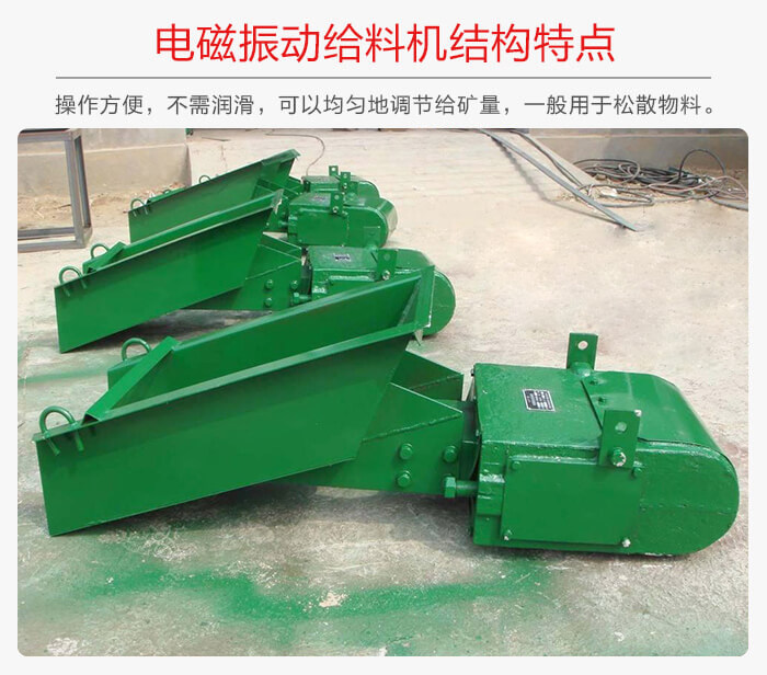 電磁振動(dòng)給料機(jī)結(jié)構(gòu)簡(jiǎn)單,操作方便,不需潤(rùn)滑,耗電量小;可以均勻地調(diào)節(jié)給礦量;因此已得到廣泛應(yīng)用。一般用于松散物料。