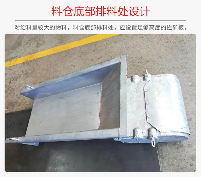 對(duì)給料量較大的物料,料倉(cāng)底部排料處,應(yīng)設(shè)置足夠高度的攔礦板; 為不影響給料機(jī)的性能,攔礦板不得固定在槽體上。