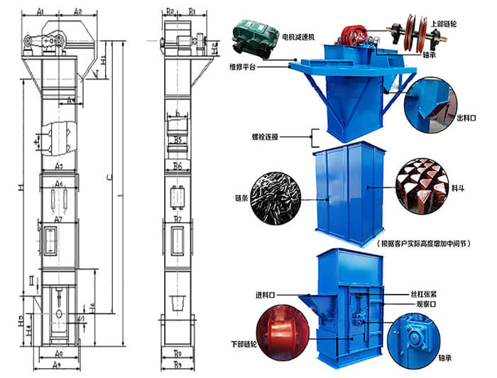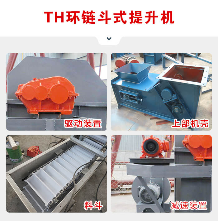 TH環(huán)鏈斗式提升機是一種常用的高效提升設(shè)備,提升產(chǎn)量大、效率高,主要由運行部件、牽引件(輸送鏈)、驅(qū)動裝置、上部裝置、中部機殼、下部裝置、加料口(入料口)和卸料口(出料口)組成。可適用與淀粉的高速提升輸送。
