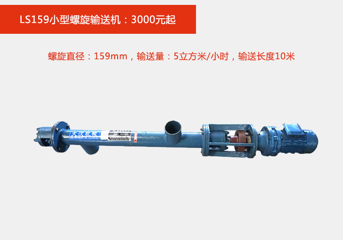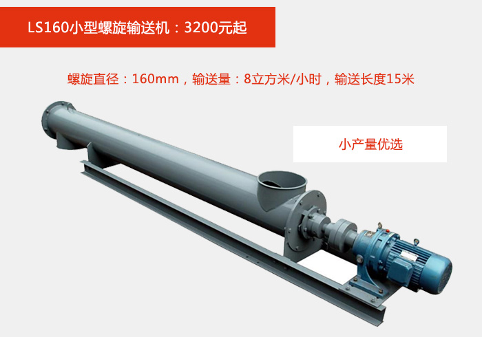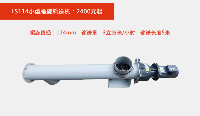 小型螺旋輸送機(jī)有114,159,160,200等4種型號(hào),不同型號(hào)對(duì)應(yīng)的輸送量,輸送長度,價(jià)格自然不同;例: