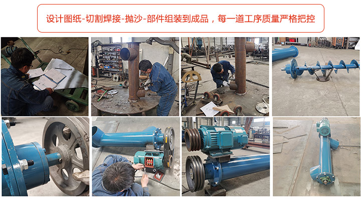專業的小型螺旋輸送機生產團隊,從設計圖紙-切割焊接-拋沙-部件組裝到成品,每一道工序都有專業的人員進行把控,力求標準化,規范化,流程化的生產工藝,保證出廠產品是高質量的!