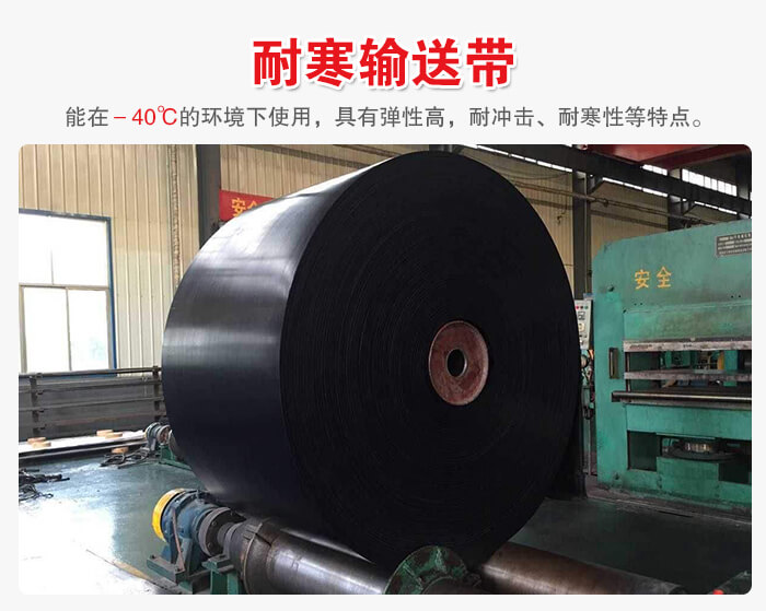 耐寒輸送帶選用的是棉帆布、尼龍帆布或聚脂帆布作帶芯,覆蓋膠采用橡膠與順丁橡膠的并用膠,能在﹣40℃的環境下使用,具有彈性高,耐沖擊、耐寒性等特點。